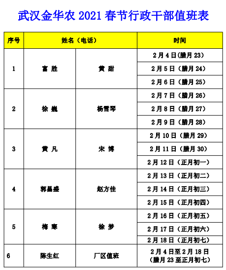 武漢金華農(nóng)關(guān)于春節(jié)值班的相關(guān)安排