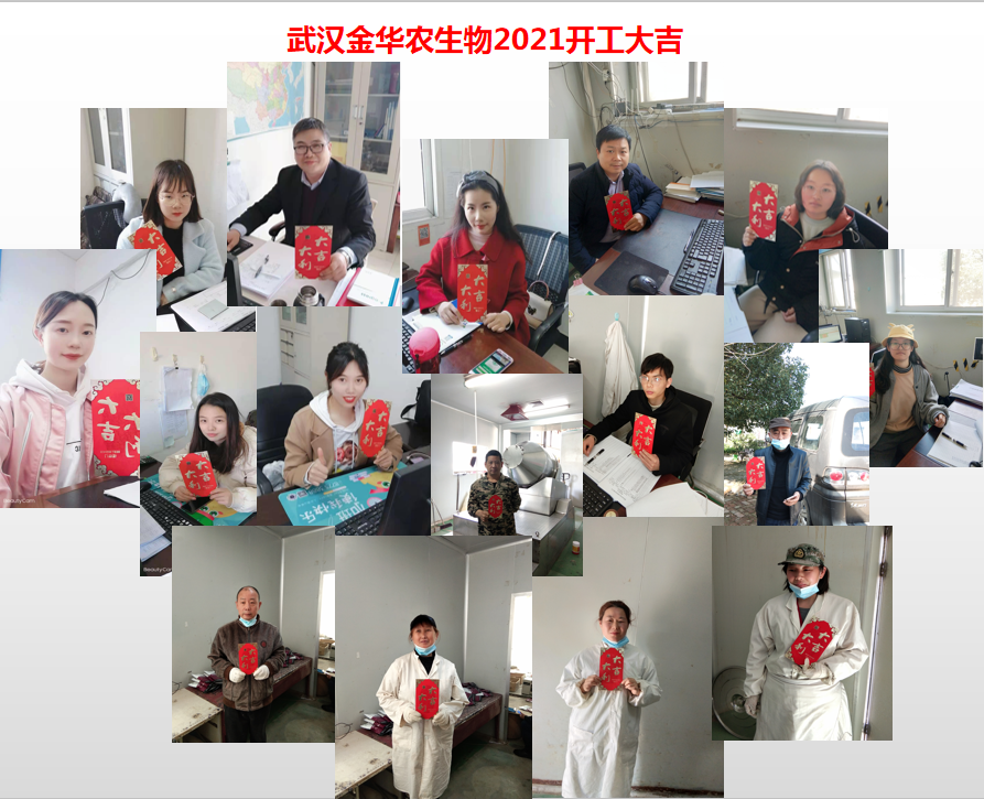 ? ? 武漢金華農生物集團于老歷正月初八(2021年2月19日)正式上班運營,開工營業,全體員工均有序投入工作,精神狀態飽滿,斗志昂揚,渾身充滿斗志,每個人信心十足,繼續為武漢金華農動保事業努力奮斗,繼續為養殖事業提供專業、高效、盡責的服務!