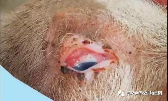 1、全身尤其是耳根后出現大量針狀出血點,出血點比較小,呈現彌漫性,從毛孔滲出(這一點很典型);從遠處看全身通紅;看豬的腹部,可見鐵繡色出血點;