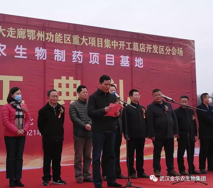 ? ? 今天,我們在這里隆重聚會,盛大舉行武漢金華生物制藥項目基地開工典禮,這也是2021年光谷科創大走廊鄂州功能區重大項目開工葛店開發區的分會場。籍此機會,我謹代表葛店開發區工委、管委會向武漢金華農生物公司表示最熱烈的祝賀,向出席今天開工典禮的各位領導、各位來賓表示最熱烈的歡迎!