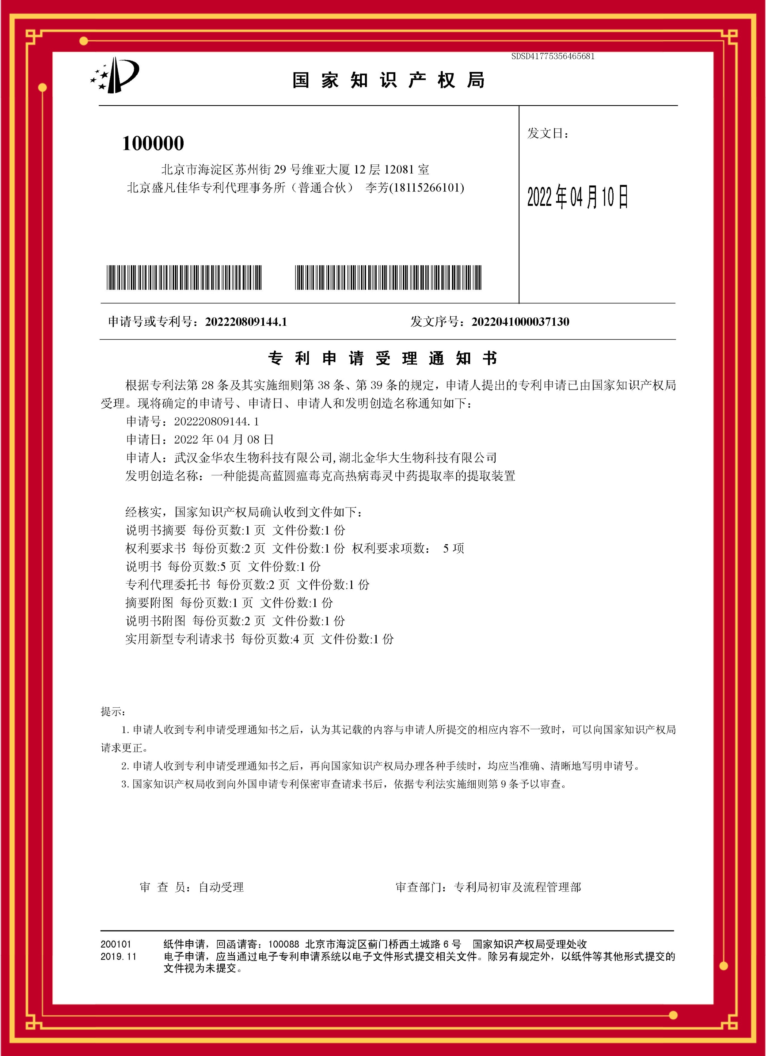 科技發明專利(高熱病毒靈):專利號—202220809144.1
