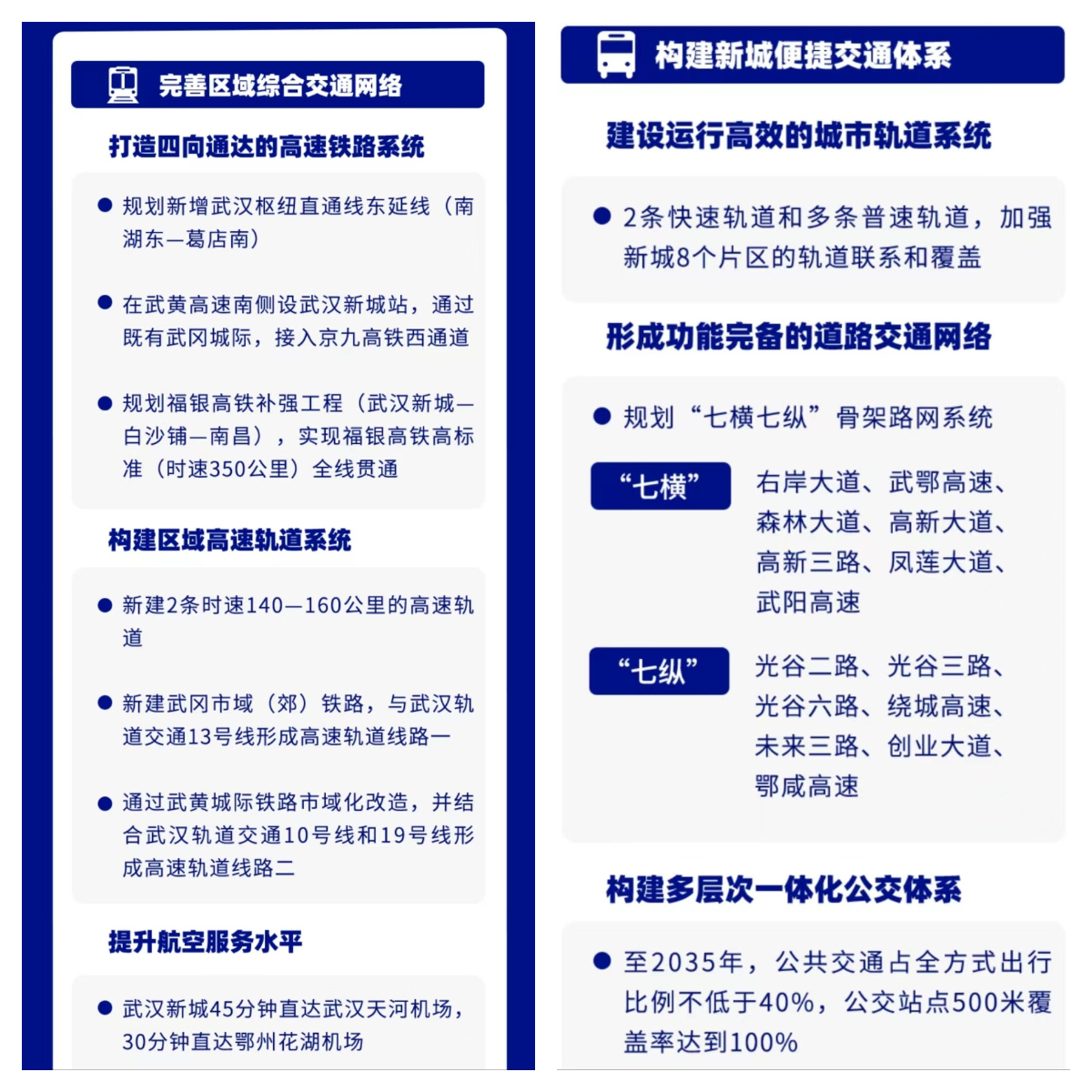 新城交通方面致力于建設四向通達的高速鐵路系統、區域高速軌道系統、城市軌道系統、“七橫七縱”完備的道路交通網絡、公交站點500米覆蓋率達到100%,構筑高效暢達的綜合交通體系。