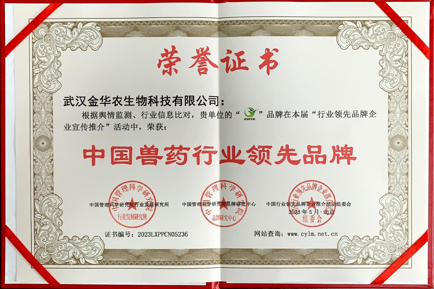 卯兔年未過半,武漢金華農(nóng)已迎來諸多利好消息。公司業(yè)績突飛猛進(jìn),銷量翻番;公司獲得省農(nóng)業(yè)農(nóng)村廳第一批新版GMP獸藥文號、飼料添加劑45個新品種批號;公司憑借專業(yè)技術(shù)、創(chuàng)新發(fā)展、高效服務(wù),被國家信用平臺、品牌強(qiáng)國計劃評選為“獸藥飼料添加劑行業(yè)典范企業(yè)”。近日,公司又在中國科學(xué)研究院組織的全國自主品牌研發(fā)、科研創(chuàng)新產(chǎn)品、質(zhì)量品控管理、高校產(chǎn)學(xué)研基地建設(shè)的評選活動中,經(jīng)嚴(yán)格篩選,層層選拔,考核評比,監(jiān)督審查,被中國科學(xué)研究院組委會授予“中國獸藥行業(yè)領(lǐng)先品牌”榮譽(yù)稱號。