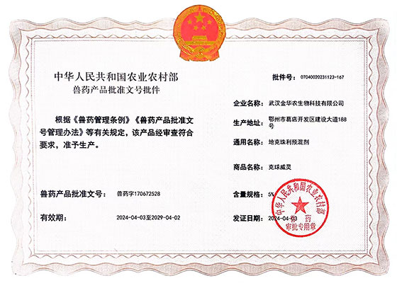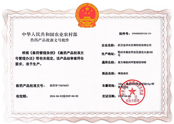 根據《獸藥管理條例》和《獸藥產品批準文號管理辦法》的規定,經農業農村部審查,準予核發武漢金華農生物科技有限公司2個新版GMP獸藥相關產品批準文號。