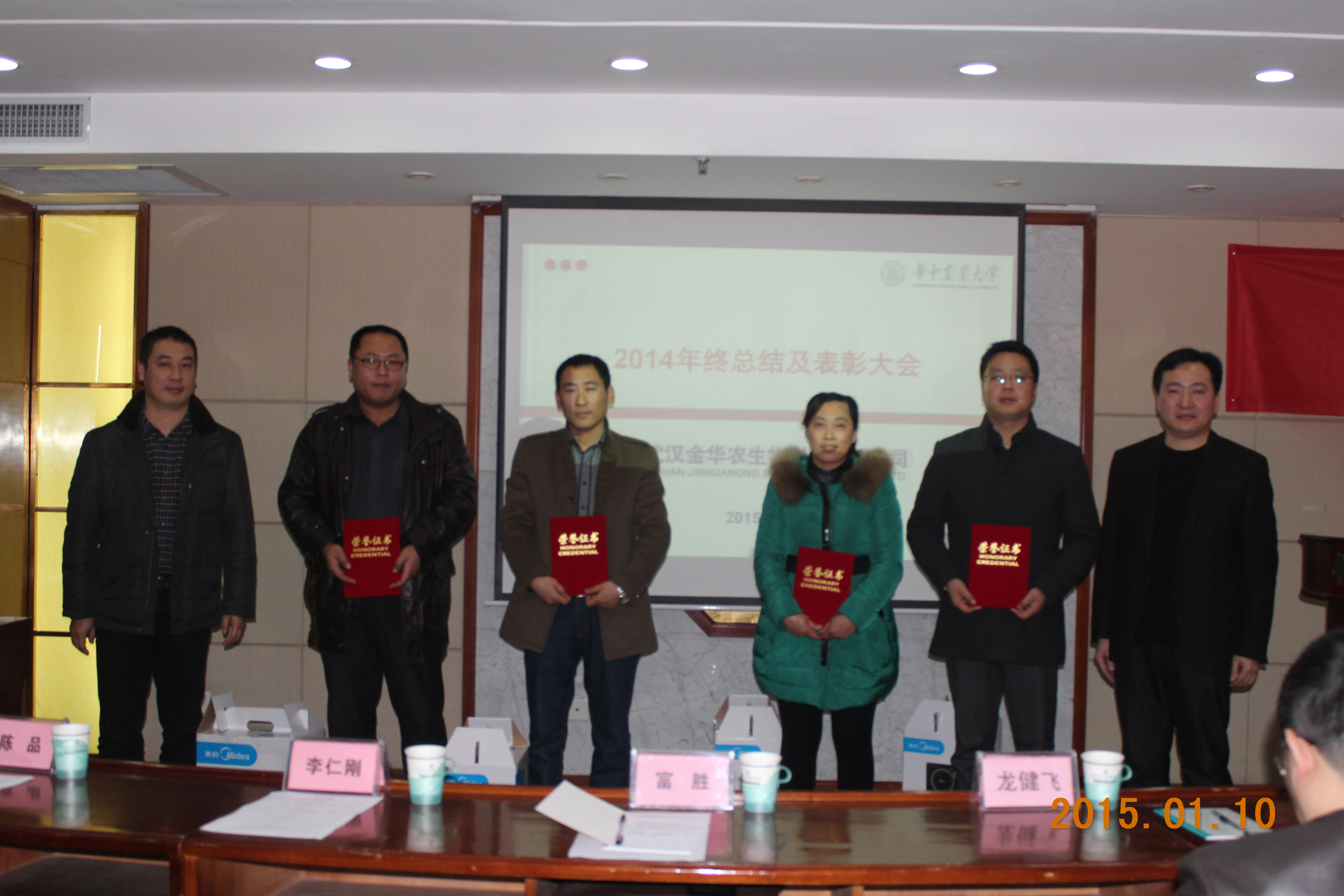 華中農(nóng)業(yè)大學(xué)附校黨委書記(原華中農(nóng)業(yè)大學(xué)科技成果轉(zhuǎn)換負(fù)責(zé)人)李仁剛書記、華中農(nóng)業(yè)大學(xué)人事處龍健飛處長(zhǎng)、華中農(nóng)業(yè)大學(xué)動(dòng)物醫(yī)學(xué)院獸藥研發(fā)專家陳品教授、湖北電視臺(tái)張堯記者出席了此次會(huì)議,并向公司致賀,祝賀金華農(nóng)公司2014年所取得的輝煌業(yè)績(jī)、可喜的進(jìn)步和大步伐的發(fā)展,期待2015年再創(chuàng)輝煌。