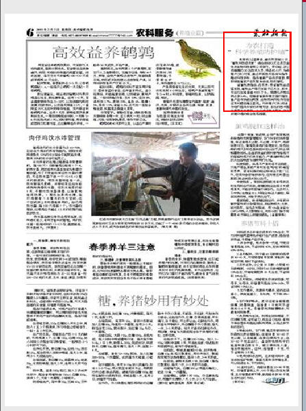 ??? 科學養殖致富,減少疫病發生,是廣大養殖戶最為關切的問題。為將農業部、省畜牧局提出的“畜牧科技進農家、結對幫扶”活動落到實處,金華農生物公司今年將抽調30名技術人員,進村入戶,與養殖戶(養殖場)對接,通過開展技術咨詢與指導、贈送科技資料、提供畜禽產品供求信息、幫助銷售畜禽產品、開通畜牧疾病咨詢熱線等服務活動,助農增收。