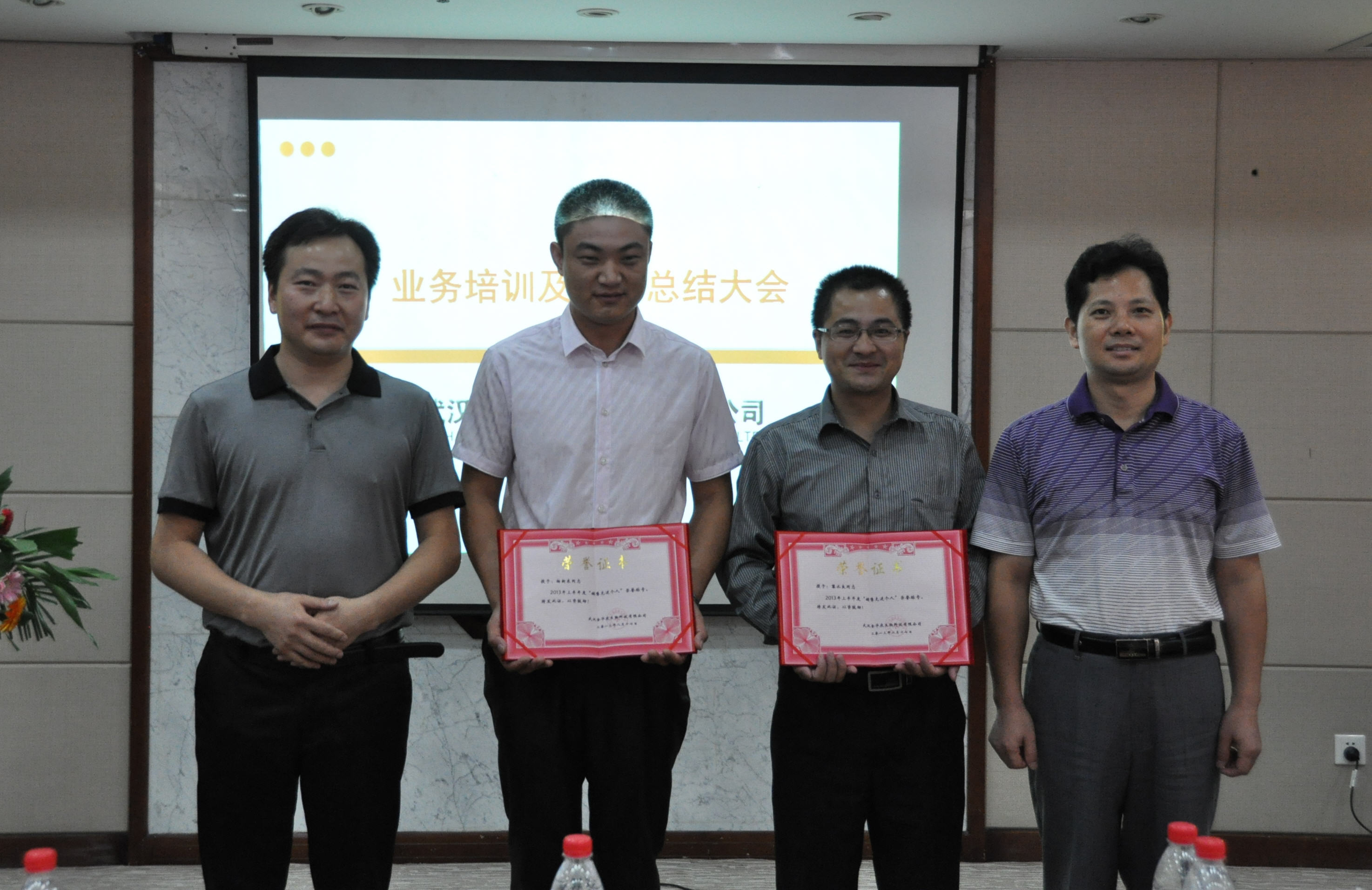 公司領導富勝總經理、肖后軍所長、李仁剛處長、姚寶安教授、齊德生教授,一起為銷售業績突出、表現優秀的市場精英們頒發獎品和榮譽證書。