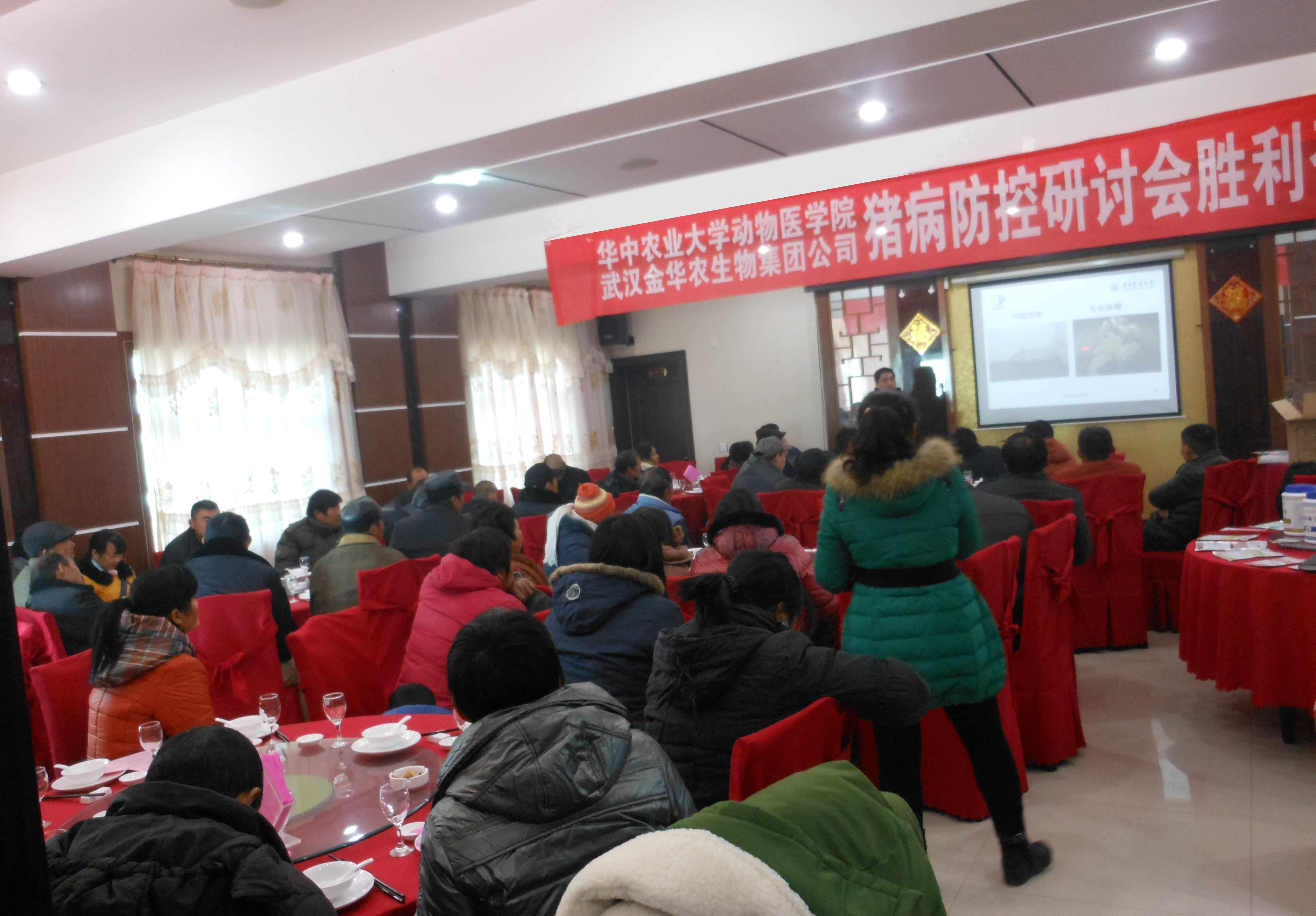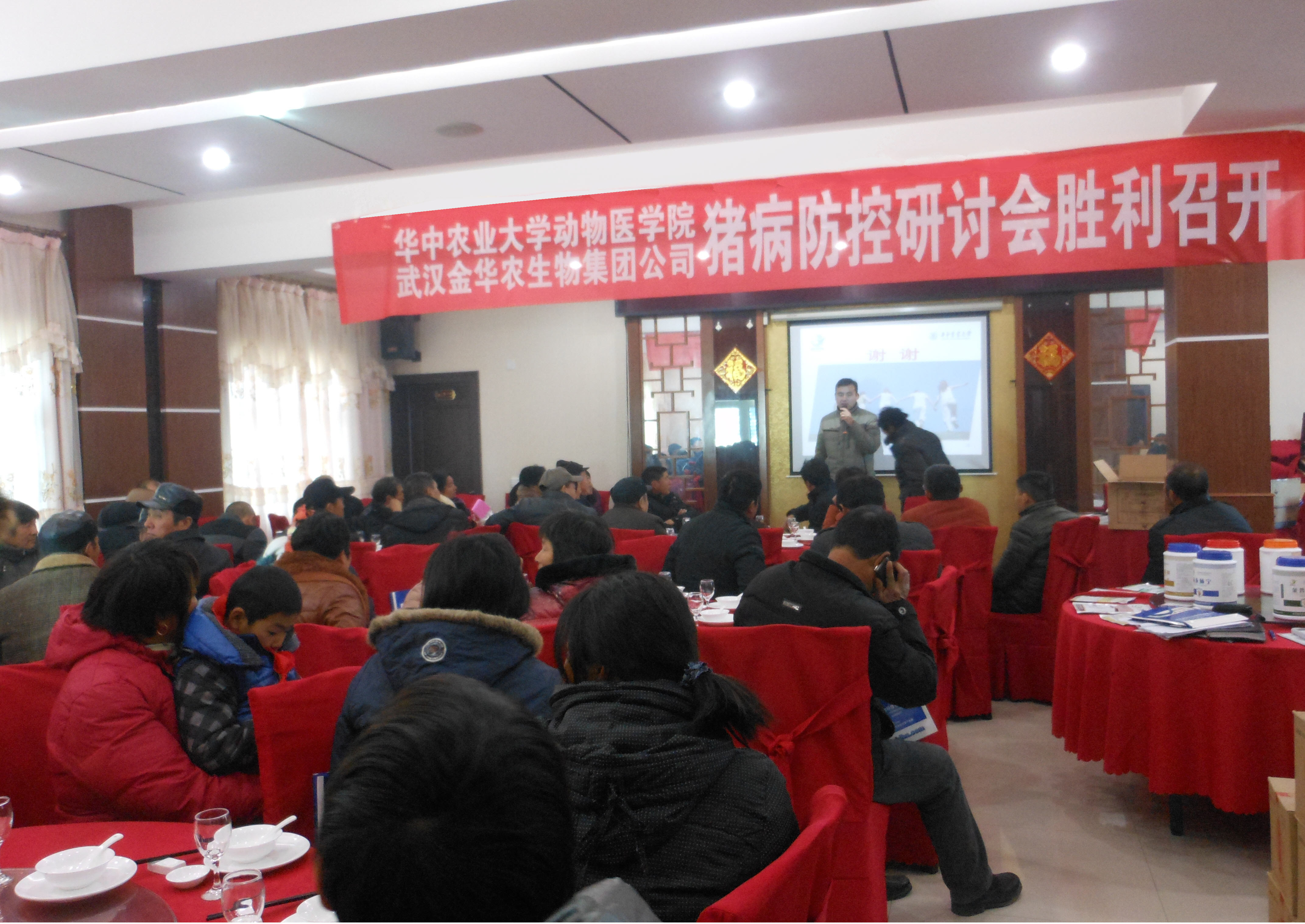 12月16日,金華農公司的科技下鄉活動在江蘇鹽城、南通等地市拉開序幕。冬天天氣寒冷,疾病的高發期也來臨,為有效提高廣大養殖戶的豬病知識與養殖技術,金華農公司受到江蘇省畜牧獸醫局邀請,聯合華中農業大學臨床獸醫專家,特別策劃了科技下鄉活動,深入一線進行豬病專題講座,面對面溝通,為他們及時排憂解難。本次活動在當地反響強烈,取得圓滿成功!