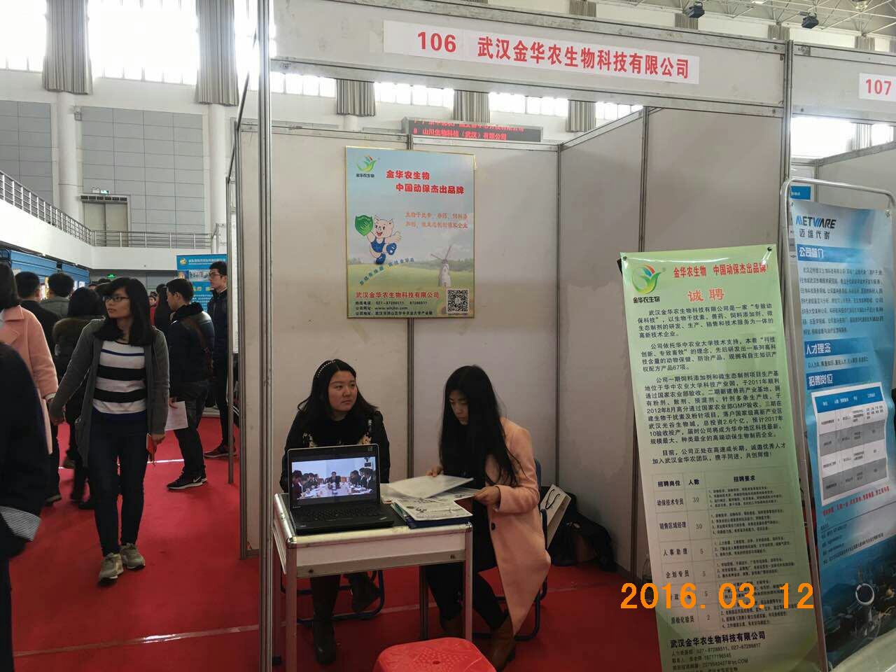 2016年3月12日,由湖北省高校畢業(yè)生就業(yè)指導(dǎo)服務(wù)中心和華中農(nóng)業(yè)大學(xué)共同舉辦的2016屆畢業(yè)生春季供需見面會(huì)在學(xué)校體育館舉行,5000余名高校學(xué)子參加了現(xiàn)場見面會(huì)。武漢金華農(nóng)生物應(yīng)邀參加,攜8大種類共66個(gè)崗位高校攬才。