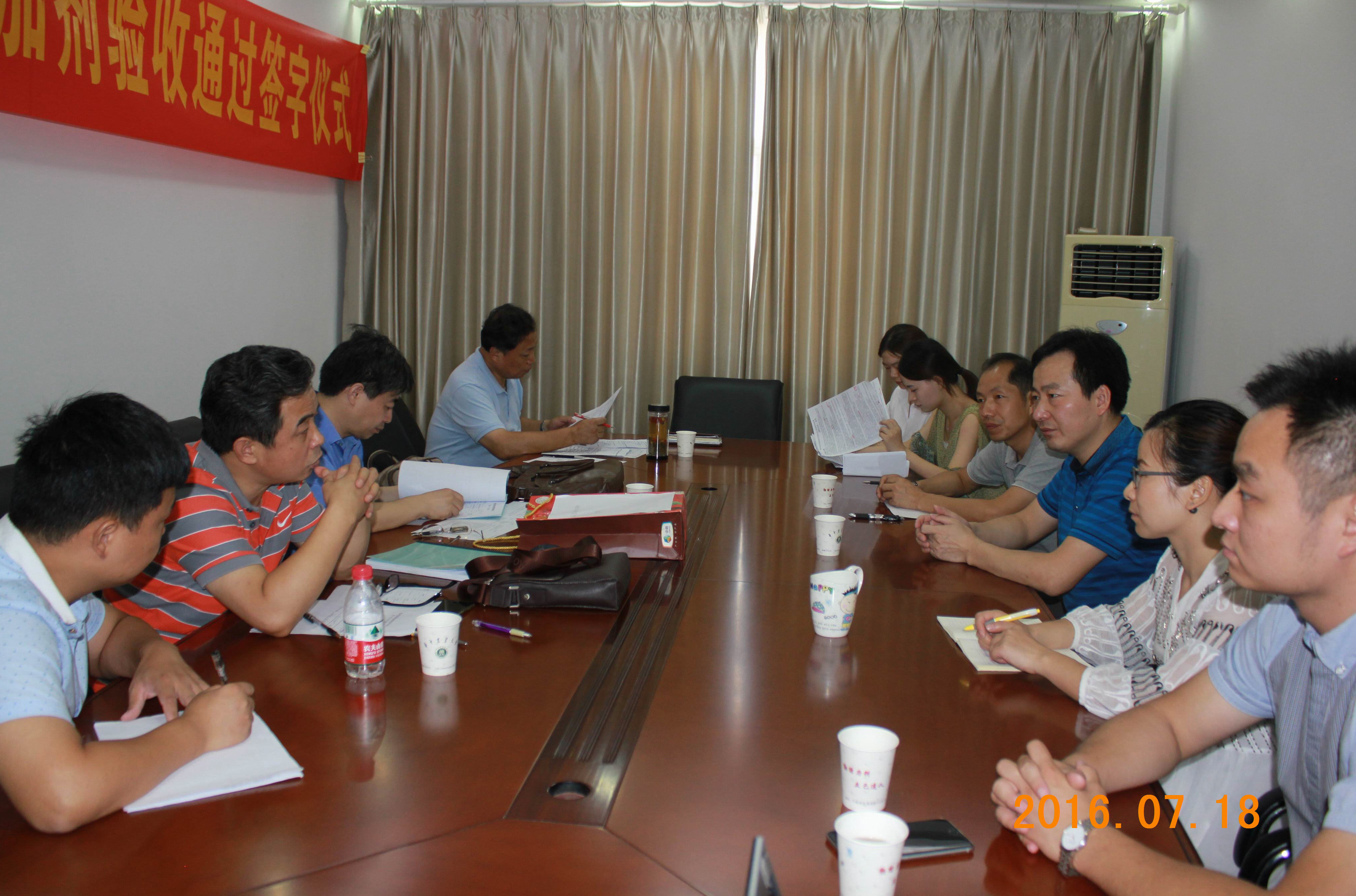 2016年7月18日,湖北省農業廳黃倩蓉處長、武漢市農業局戴紅安局長、湖北省飼料添加劑驗收專家組齊德生教授、牛智友教授一行5人,蒞臨我公司華中農業大學科技園生產基地視察指導工作,對5年期滿的飼料添加劑(含微生物制劑)的生產線進行復檢驗收,武漢金華農生物獲得高分并一次性通過,每個驗收指標都得到了畜牧局、飼料辦主管領導和各位專家的高度肯定與贊揚。