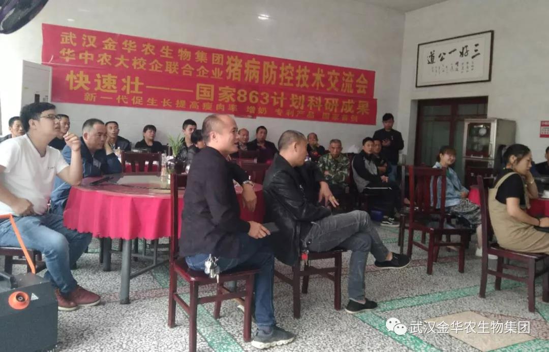 2020年5月15~18日,武漢金華農生物集團“夏季豬病防控技術交流圓桌會”暨“快速壯”“肥豬增重促生長,母豬提免增奶”成果交流在湖南益陽勝利召開,這是公司2020年第一次連續3場豬病防控會議,取得圓滿成功!科技下鄉到村,以養豬示范村為單位,開展豬病防控知識普及,武漢金華農生物開創新模式!來自當地的20位豬場養殖領頭人,與公司技術專家姚教授,趙教授,技術指導原老師,湖南大區負責人張經理,開展了專項座談交流會議。